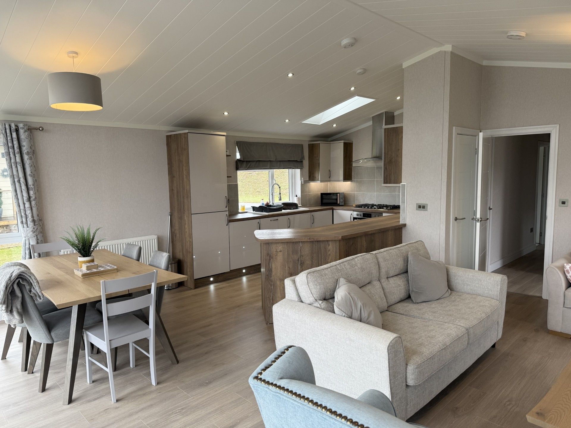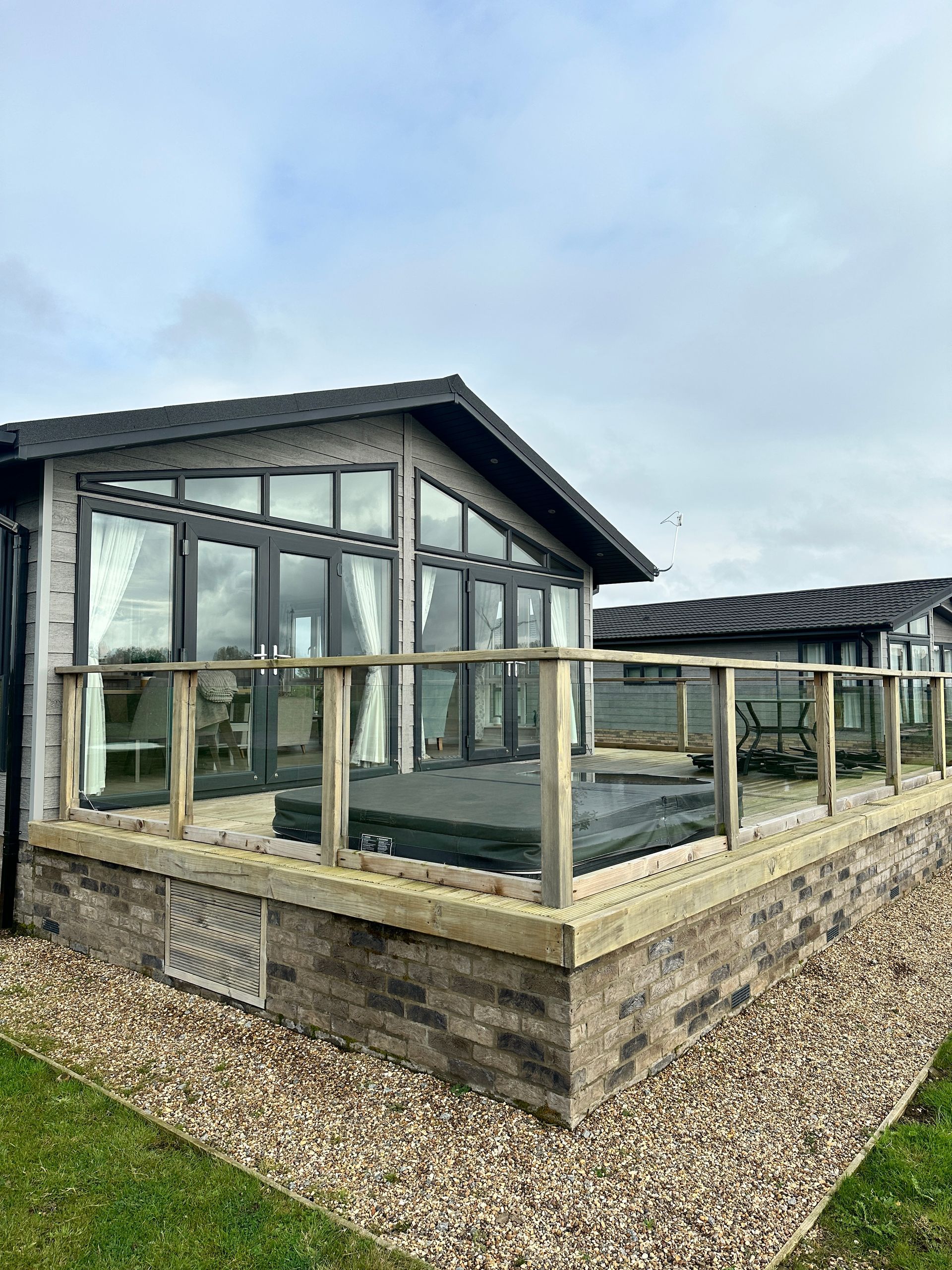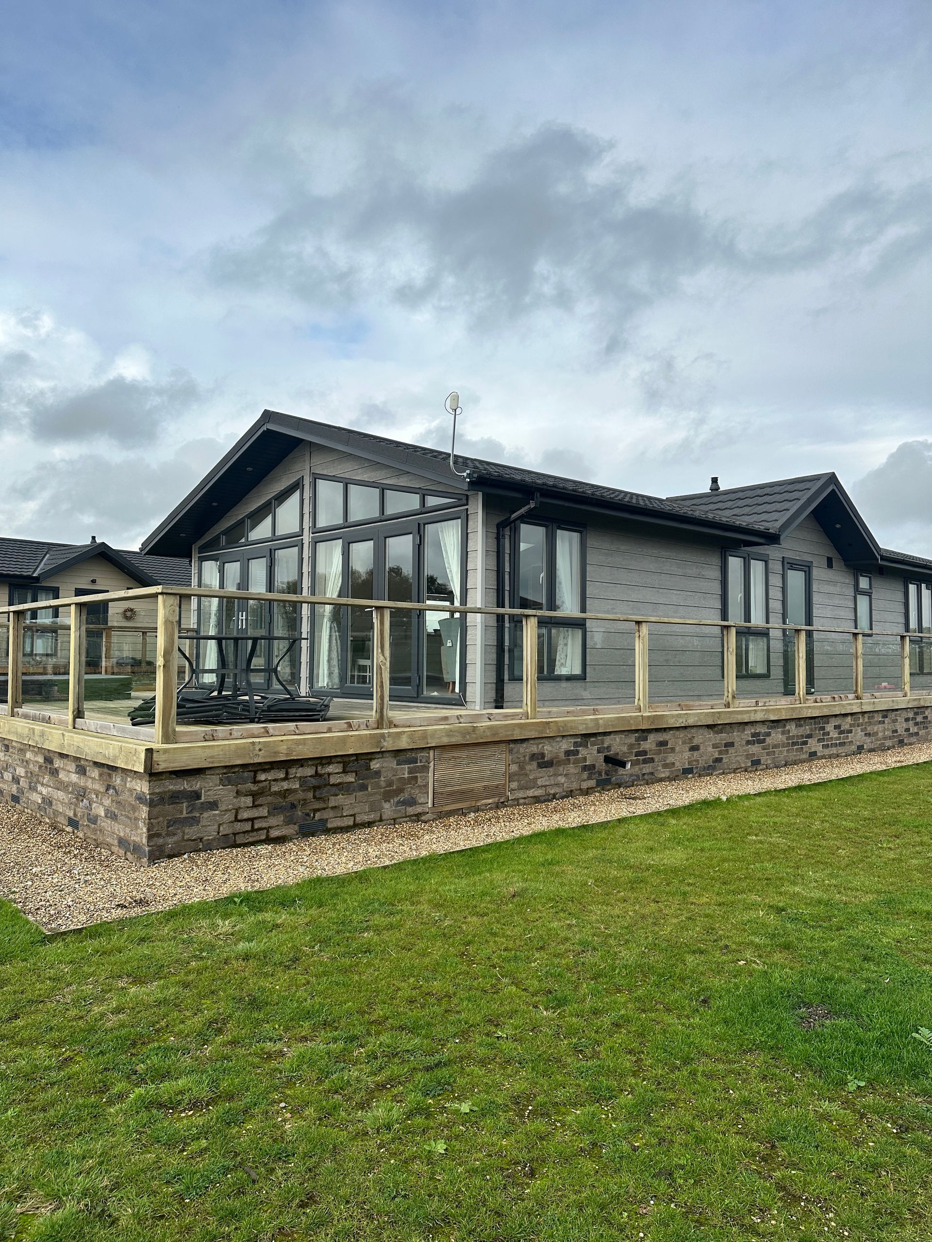 Bulit in May 2022, this Omar Kingfisher sits near the end of the quiet and secluded Waterfall Way, the newest extension to Heron Lakes. Its south facing extended decking incorporates a built-in hot tub and provides the potential for 12 hours of sunshine. The outside garden space is untouched providing the option to landscape, and there is private parking for up to 3 cars, and a small shed. Site fees are paid until April 2026.