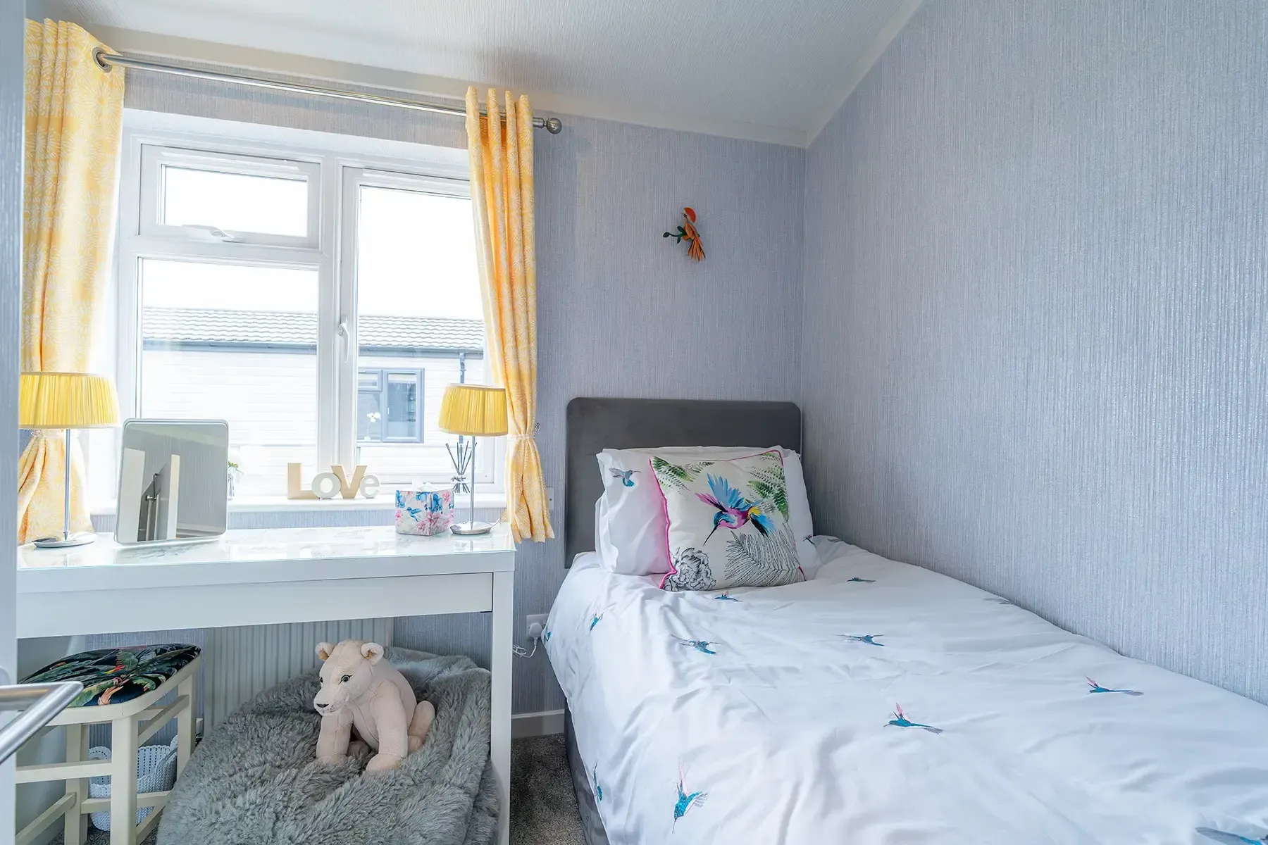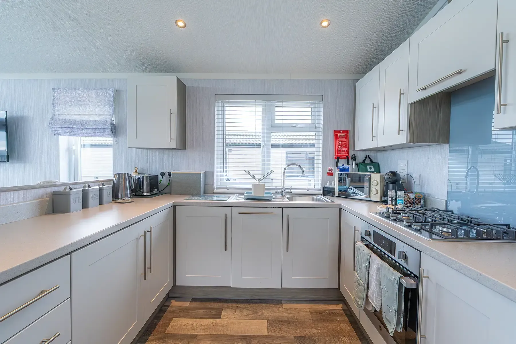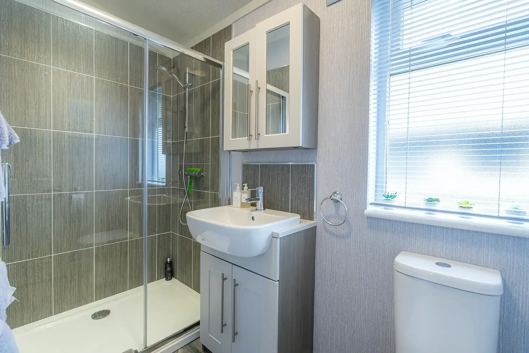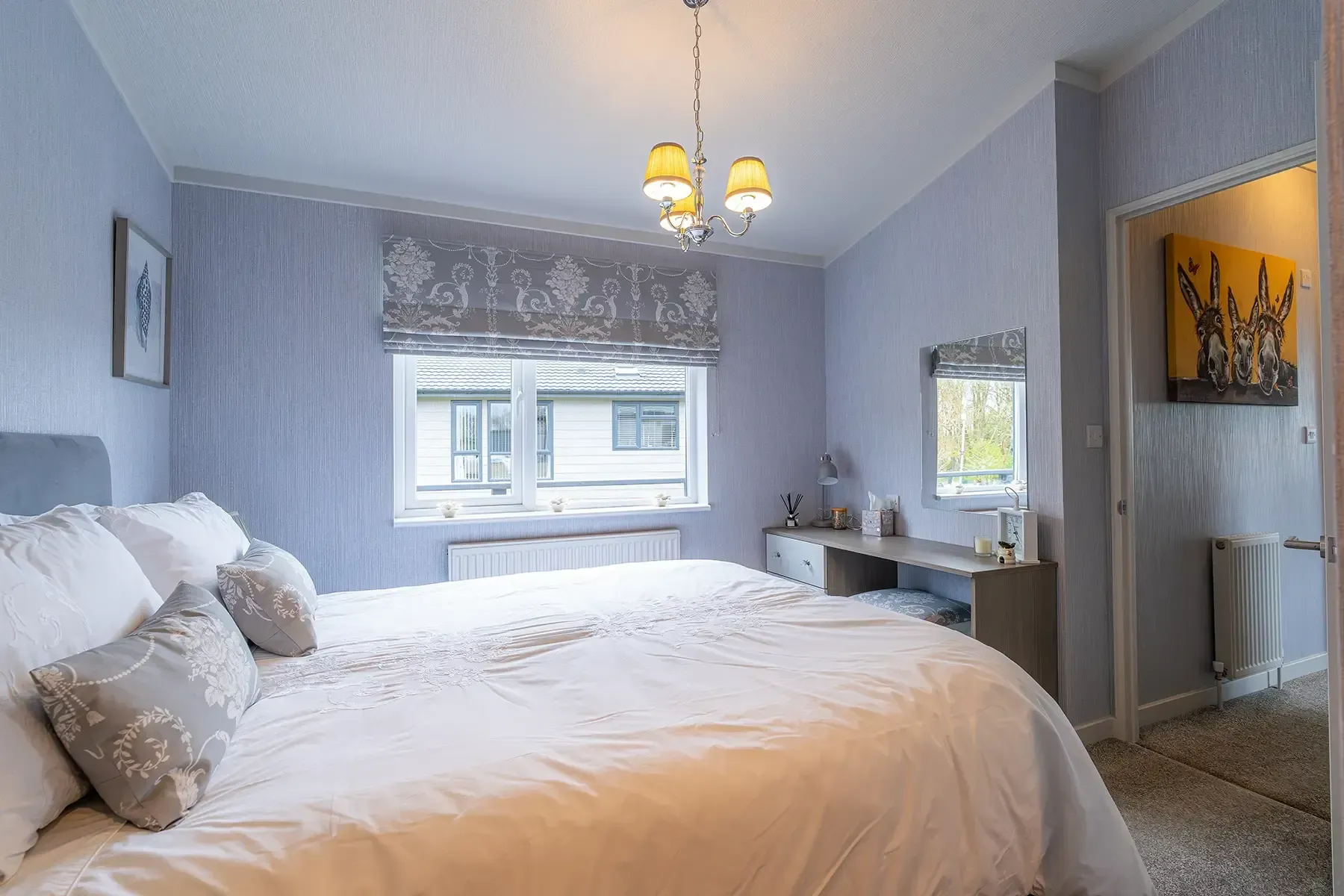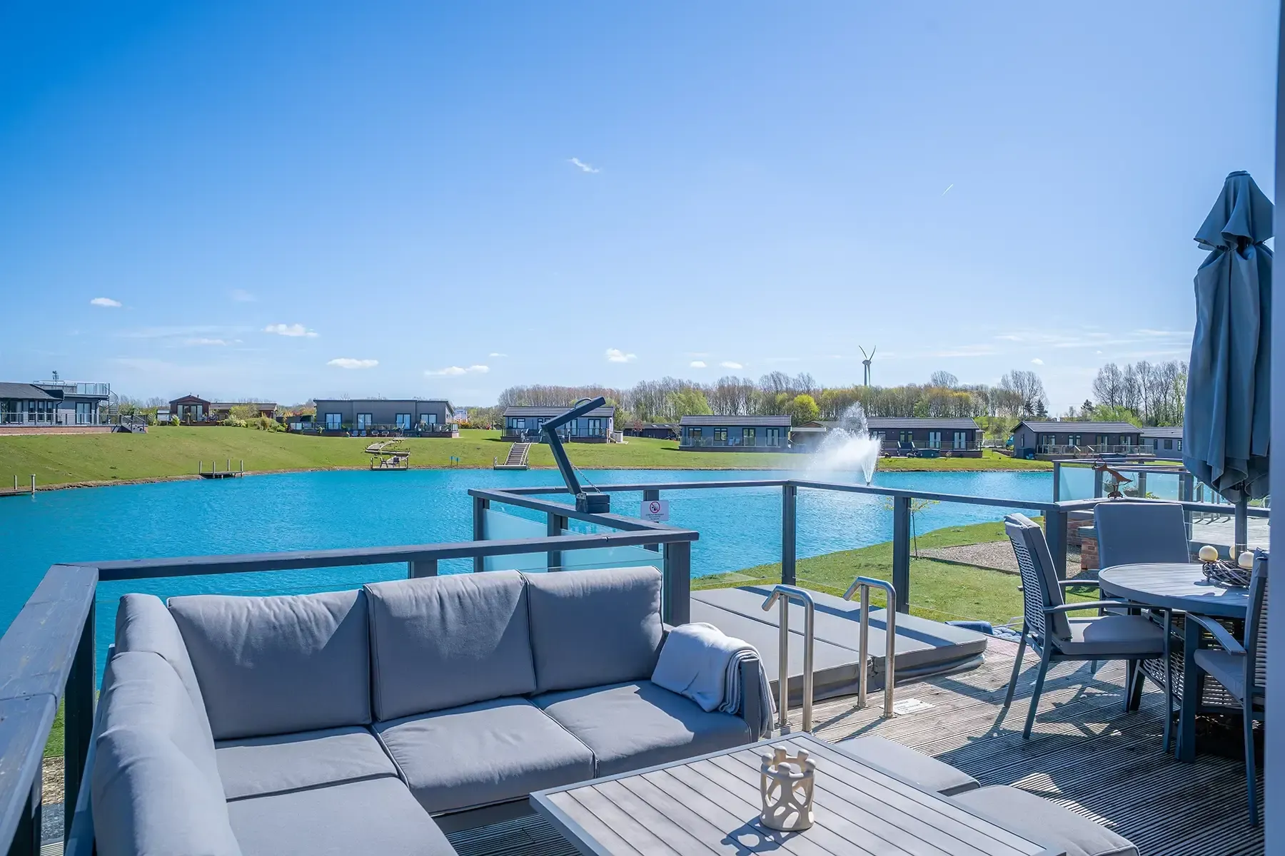 This is a beautiful 2 bedroom lodge with an open plan kitchen and lounge area which looks out onto the fountain lake. With a large decking area this lodge also includes a sunken hot tub with uninterrupted views of of the fountain. This lodge is beautifuuly decorated throughout.