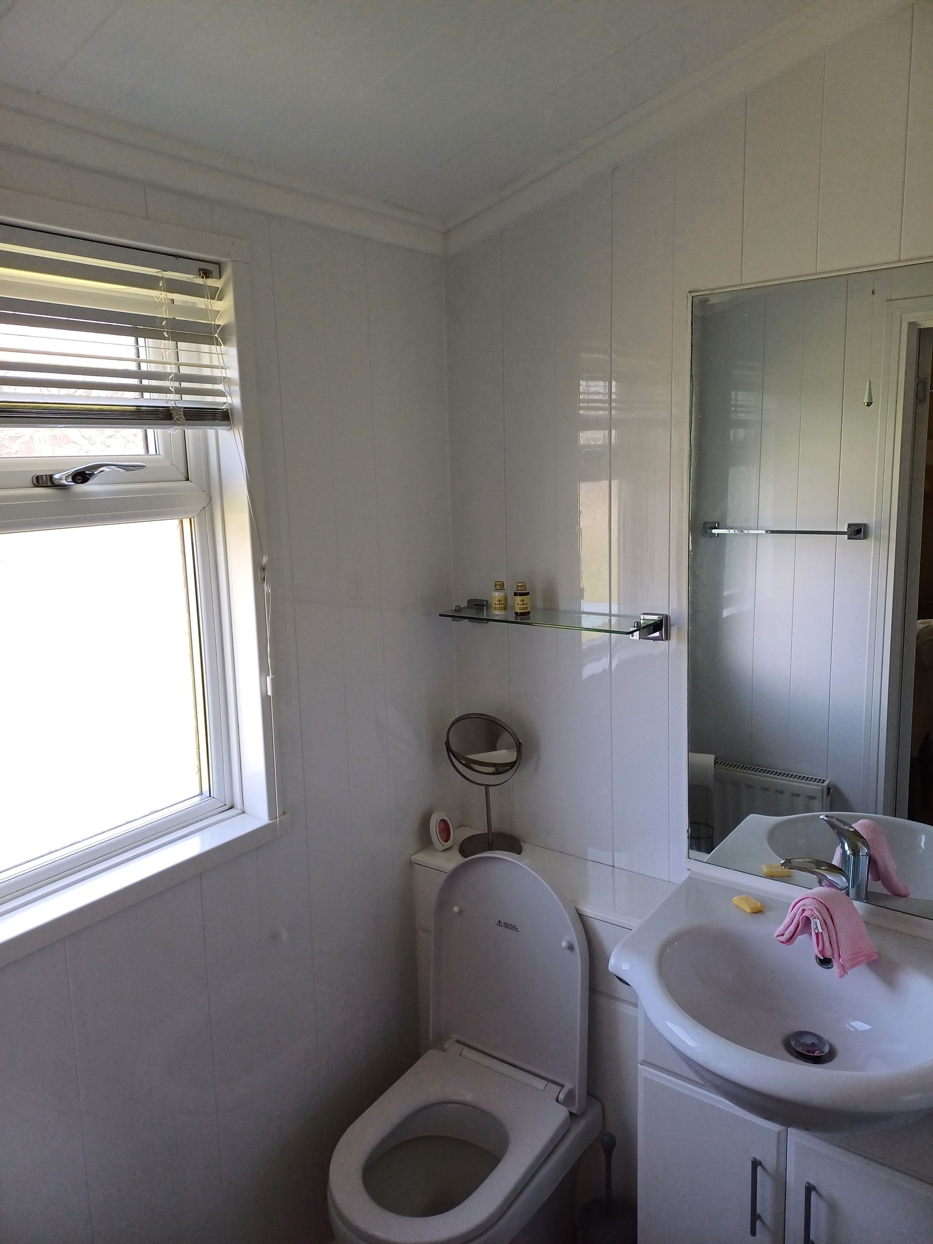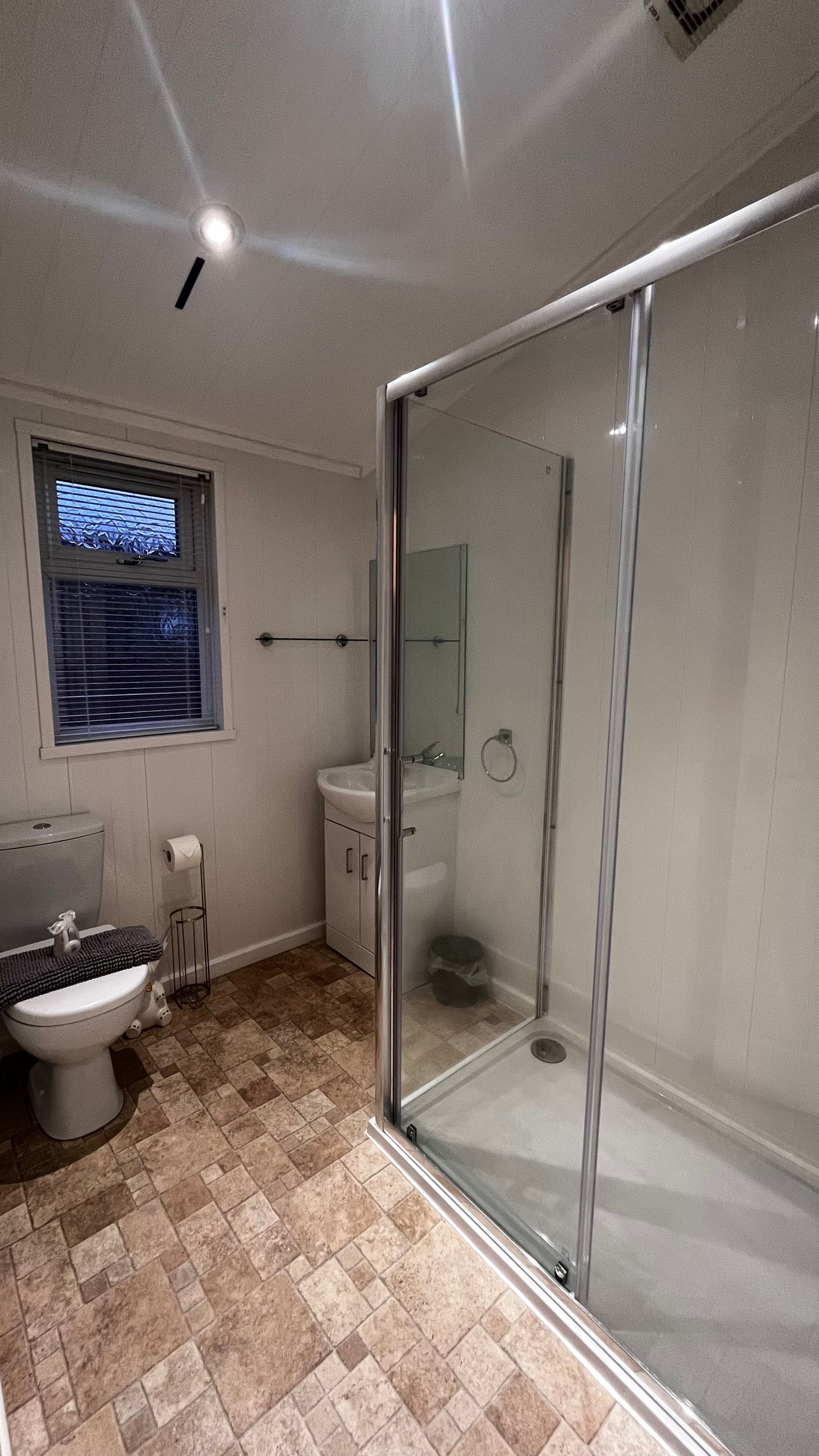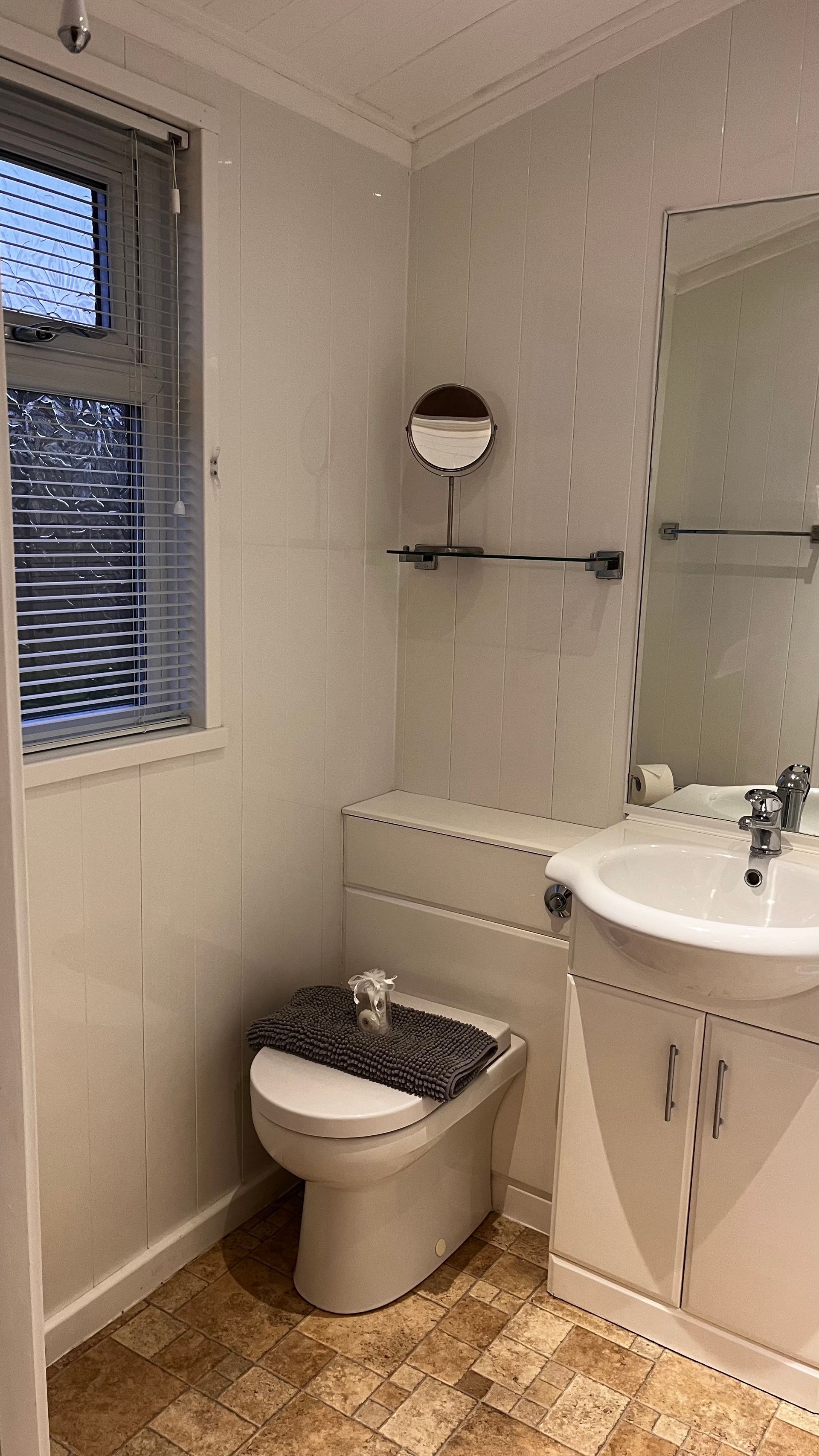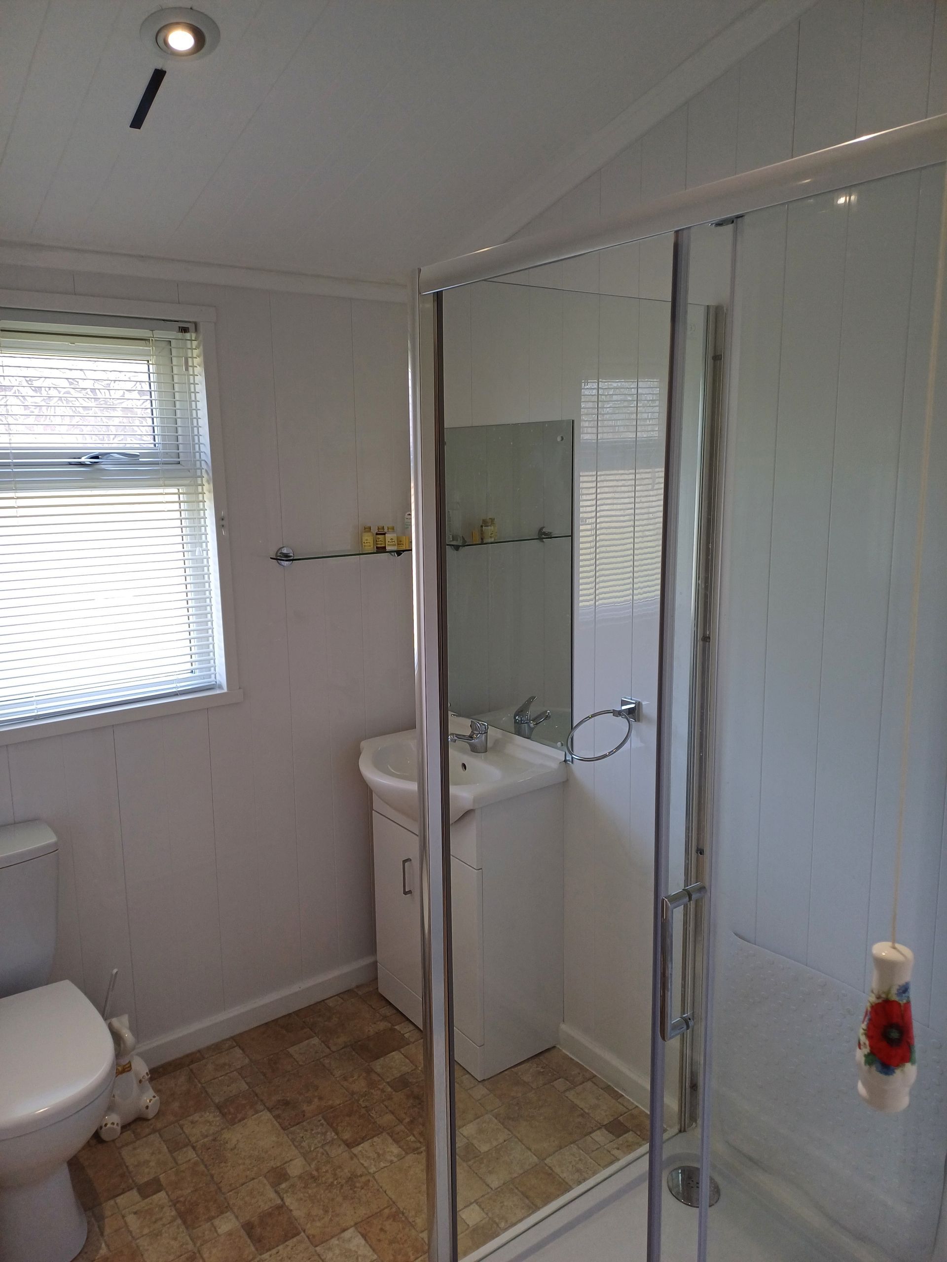 Bathroom - family bathroom is accessed from the hall; it is well appointed and features a walk-in shower enclosure ~WC and wash basin.