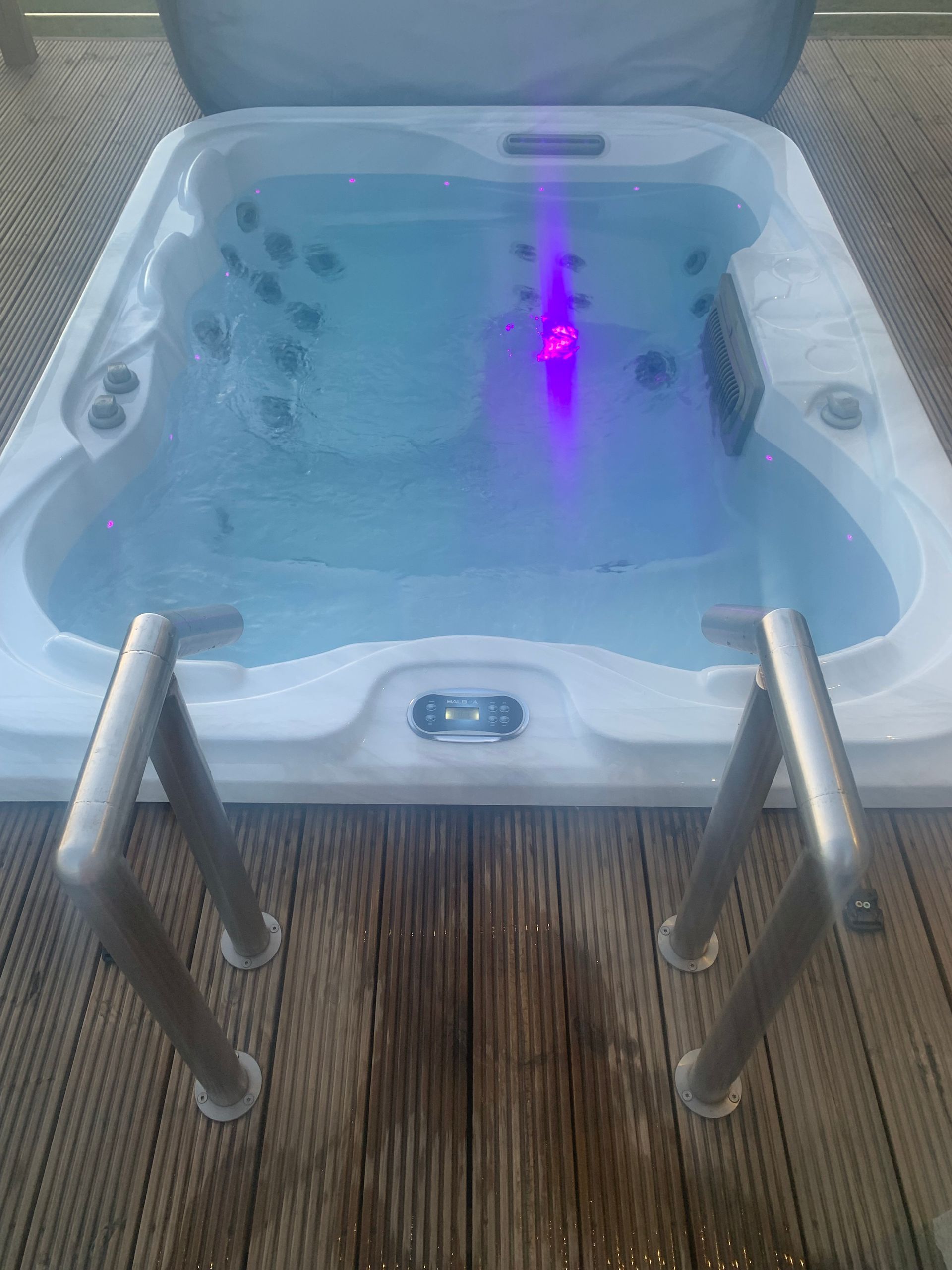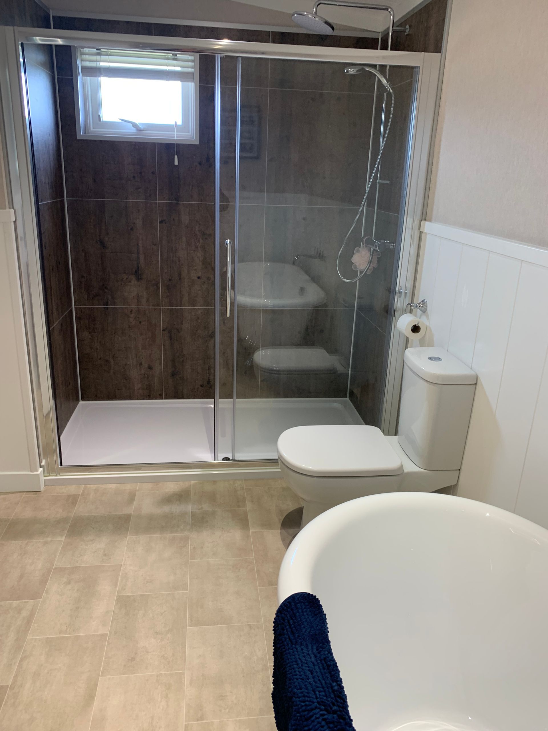 Bedroom 1 has patio doors leading directly to Sunken Hot Tub. King size Bed with dressing and vanity area with full length fitted wardrobes. Ensuite with bath and extra large rain shower.